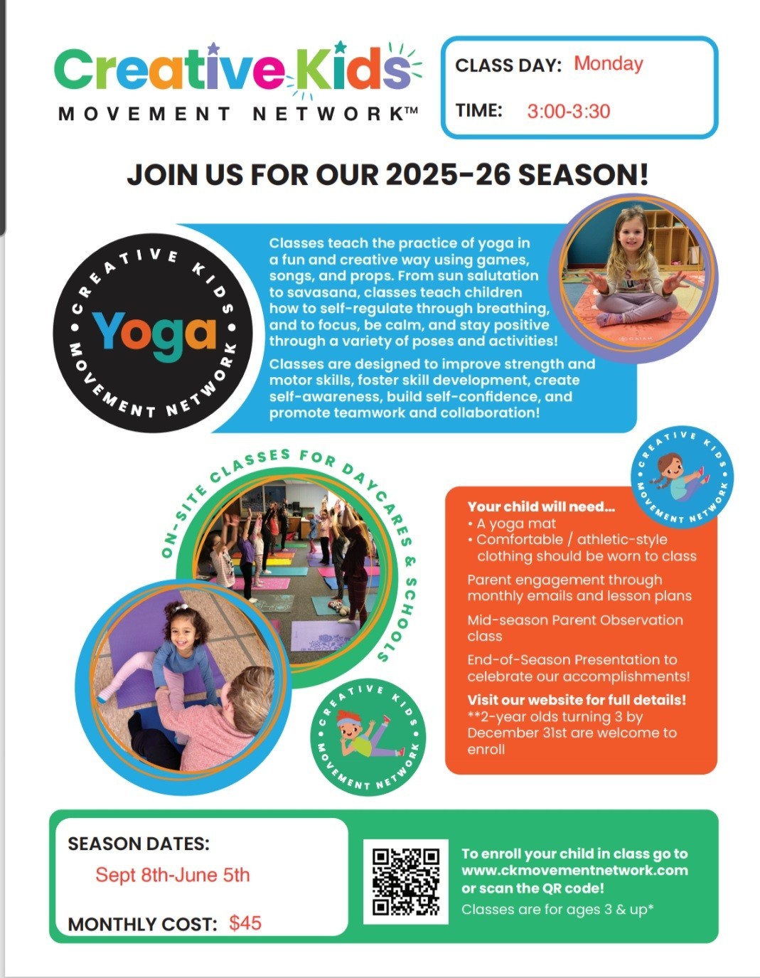 Spaces are limited! Enroll your child in the Creative Kids Dance or Yoga Program at a Rochester, NY Care-a-lot today.